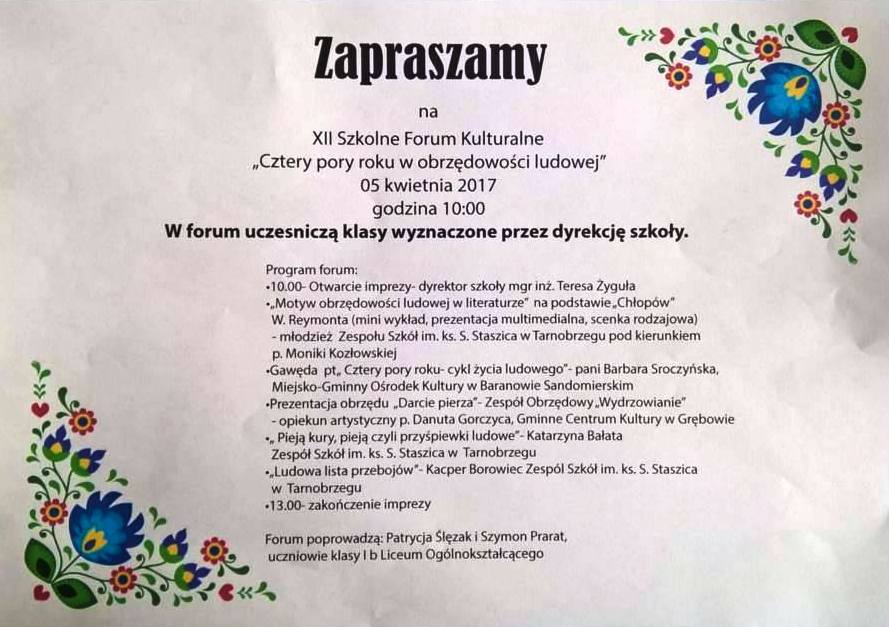 30 marca 2017 roku odbył się Półfinał Wojewódzki Licealiady w koszykówce chłopców. Nasza szkoła zajęła II miejsce. Mielec I miejsce i Stalowa Wola III miejsce.Od 26 marca do 8 kwietnia uczniowie klas trzecich technikum Zespołu Szkół im. ks. Stanisława Staszica - popularnego w Tarnobrzegu "Górnika" - odbywają praktyki zawodowe w mieście portowym Portsmouth na południu Anglii. Wyjazd jest zorganizowany i całkowicie sfinansowany z funduszy programu "Staże zagraniczne dla uczniów i absolwentów szkół zawodowych oraz mobilność kadry kształcenia zawodowego” realizowanego ze środków PO WER na zasadach Programu Erasmus+.