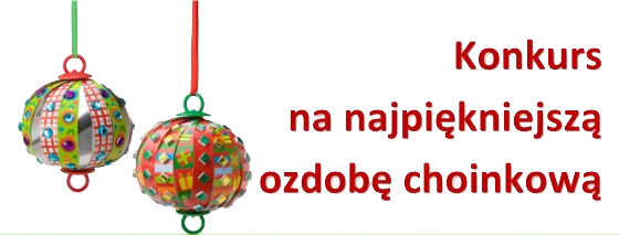Samorząd Uczniowski ogłasza konkurs na najpiękniejszą ozdobę choinkową. Wszyscy uczniowie, którzy zechcą wziąć w nim udział, proszeni są o dostarczenie ozdób do pani Anety Mirackiej lub Karoliny Dziadosz do 18 grudnia 2015 roku. Zachęcamy do licznego udziału w konkursie- słodkie upominki czekają!