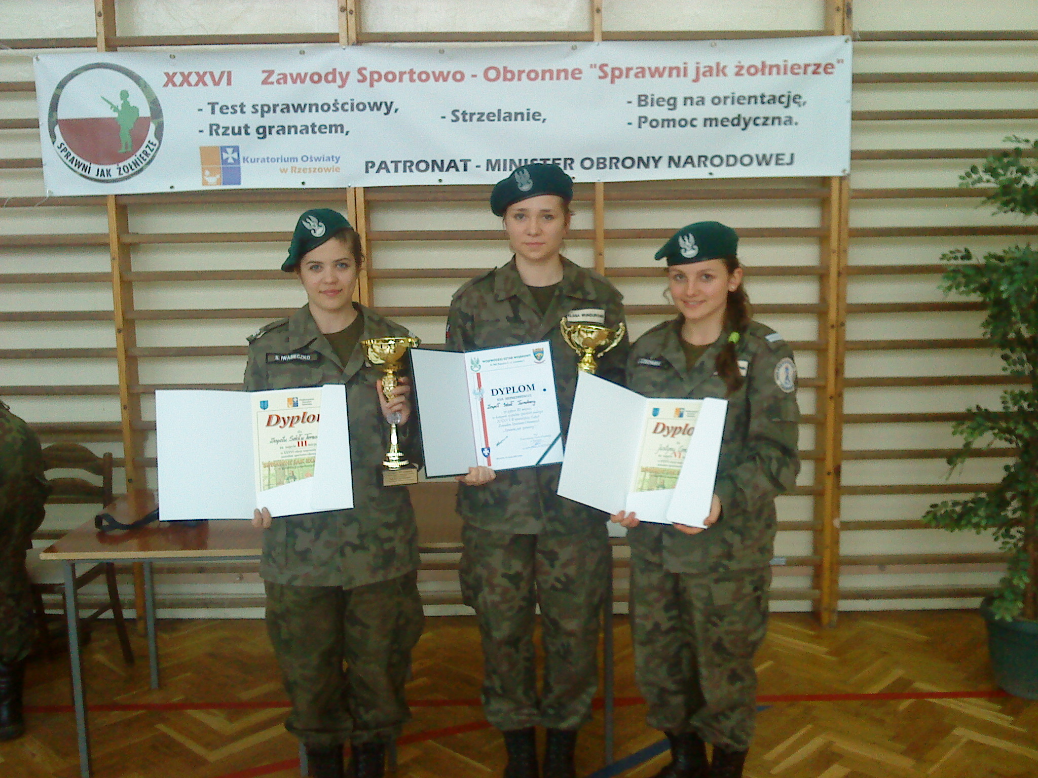 25 maja 2013 roku w Korczynie k/Krosna drużyna dziewcząt naszej szkoły rywalizowała w Finale Wojewódzkim zawodów Sportowo obronnych "Sprawni jak Żołnierze. Reprezentacja szkoły w składzie: Justyna Czechura (Kapitan - klasa II M), Sylwia Iwasieczko - klasa II M i Magdalena Wilk klasa I F zajęły III Miejsce ulegając obecnym Mistrzyniom Polski 2012 drużynie z Zespołu Szkół Ponadgimnazjalnych Nr. 6 Krosno, Drugie miejsce Przypadło Dziewczętom z Zespołu Szkół Zawodowych Pustków Osiedle. Indywidualnie Justyna Czechura zdobyła 6 miejsce.