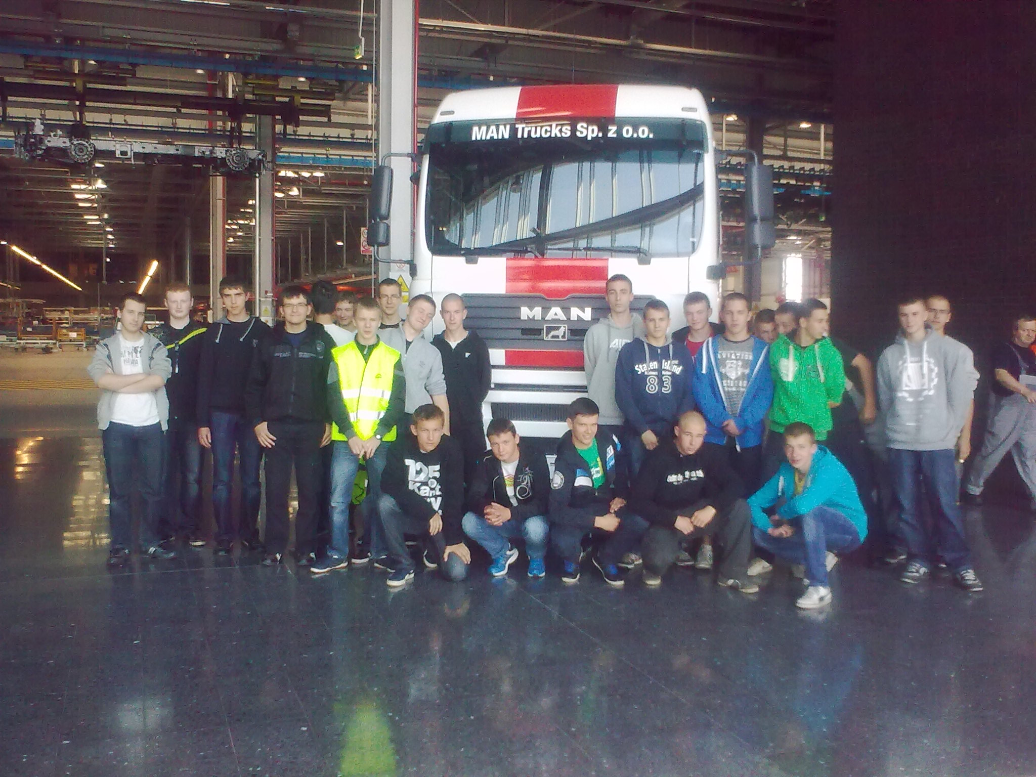 29 maja uczniowie klas pierwszej i drugiej technikum pojazdów samochodowych mieli możliwość zwiedzenia jednego z najnowocześniejszych zakładów montażowych samochodów ciężarowych MAN w Niepołomicach. Władze firmy przygotowały dla uczestników wycieczki konkurs wiedzy o firmie MAN. Szczęśliwcy cieszą się z nagród, firmowe kubki. smycze i ciągniki siadowe, szkoda że miniaturka:)