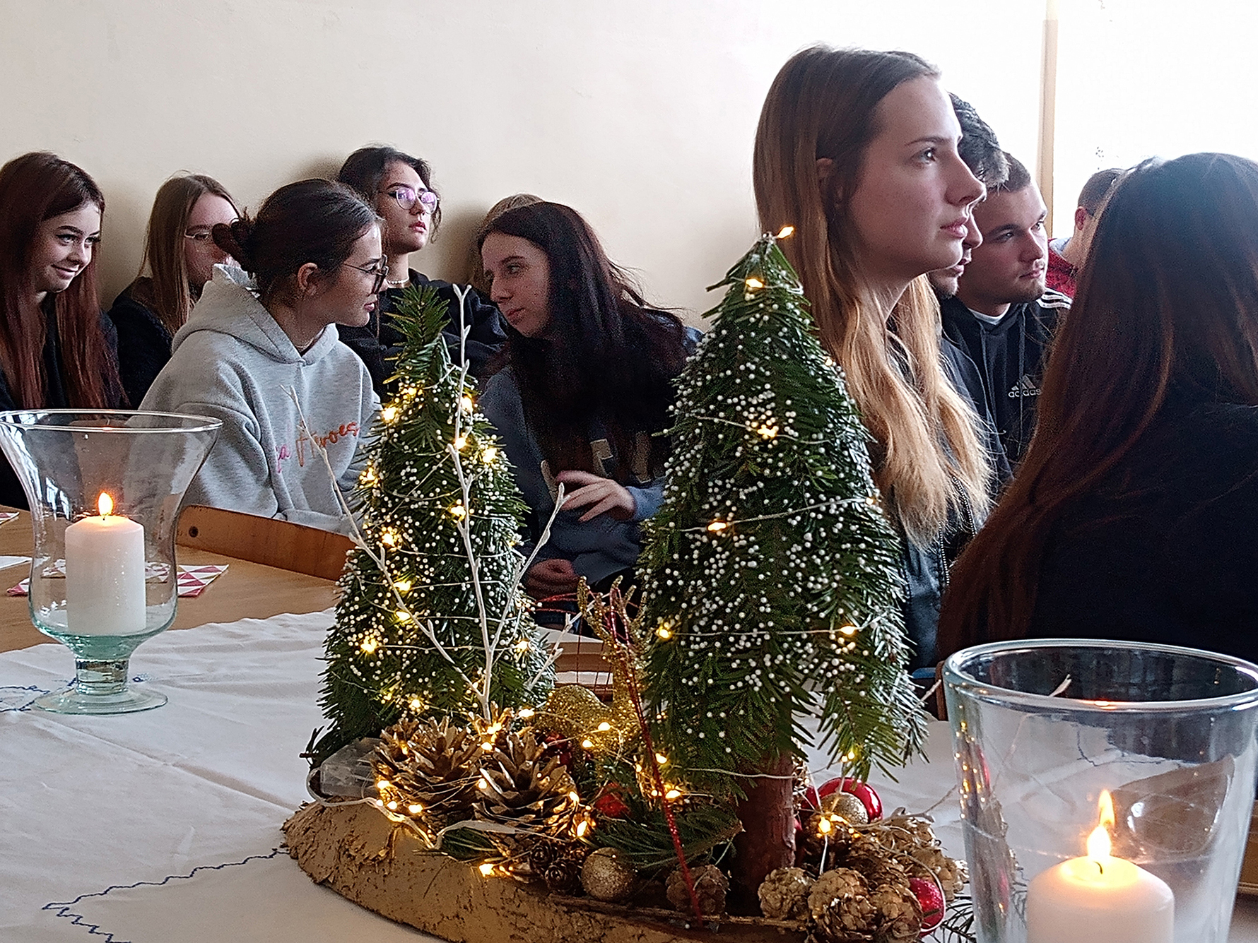 20 grudnia 2022 roku już kolejny raz spotkaliśmy się na wspólnym kolędowaniu w językach obcych. Utalentowana wokalnie i muzycznie młodzież zaprezentowała najpiękniejsze kolędy w języku angielskim, rosyjskim, niemieckim, hiszpańskim, francuskim i polskim. Przy akompaniamencie skrzypiec, akordeonu, gitary i saksofonu mogliśmy posłuchać przepięknych kolęd i piosenek świątecznych. Wszystkim udzielił się świąteczny nastrój. Cieszymy się, że mamy tak uzdolnioną młodzież, która rokrocznie poszerza swój repertuar i chętnie bierze udział w naszych spotkaniach.