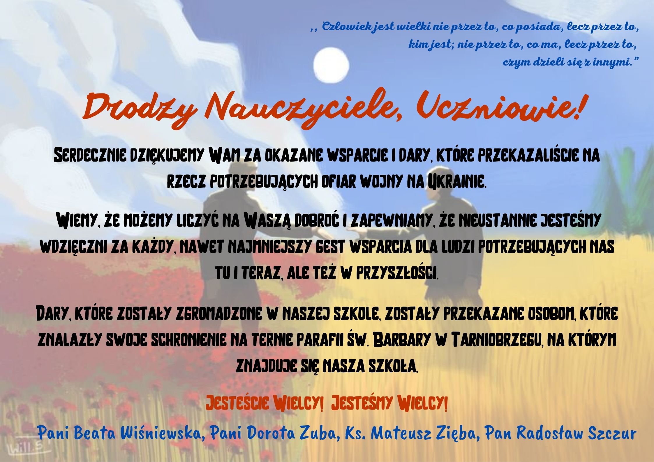 Życzymy Wszystkim wiele satysfakcji z podejmowanych działań na rzecz innych.