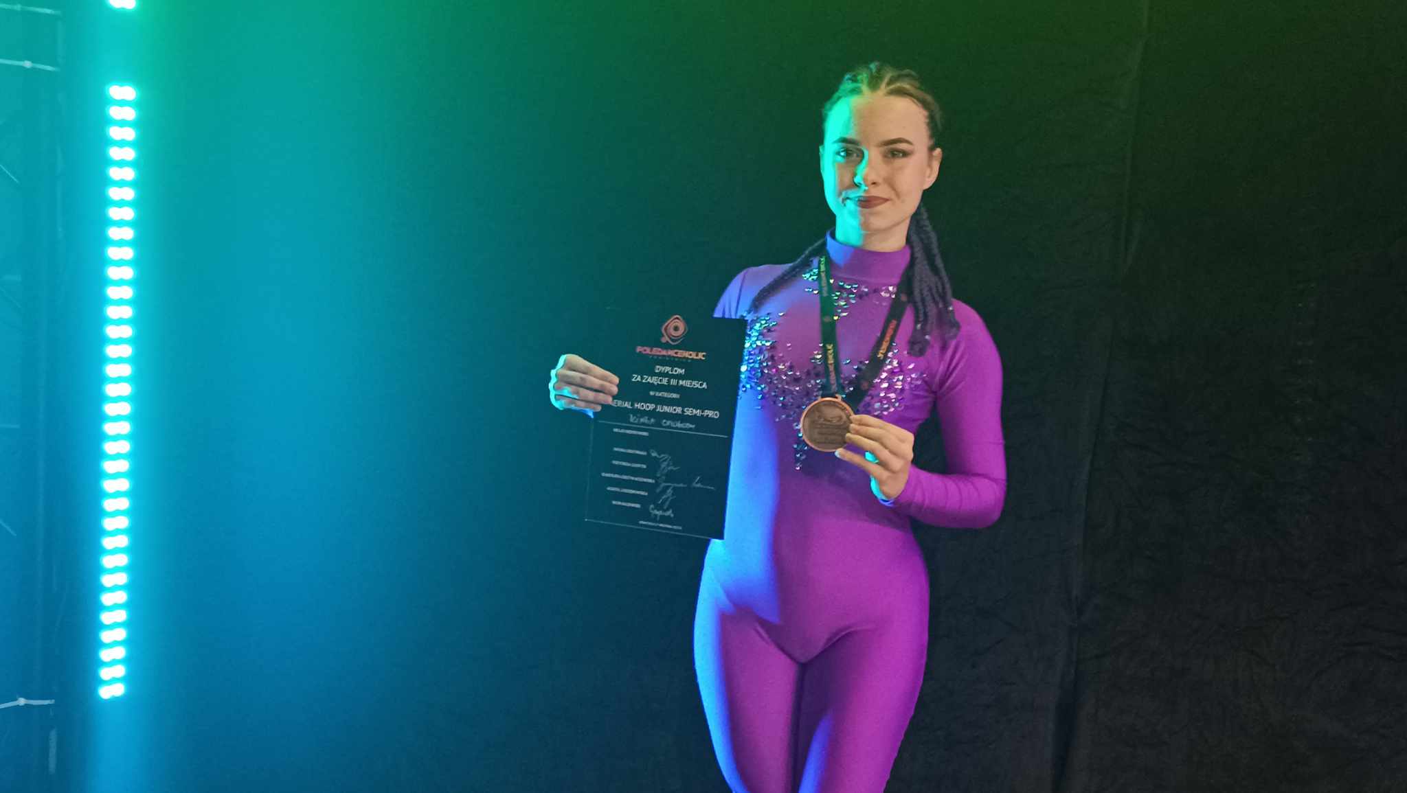 Miło nam poinformować, że uczennica naszej szkoły Kinga Chołody zdobyła brązowy medal na Ogólnopolskich zawodach Poledanceholic w kategorii Aerial Hoop Junior Semi-pro w Rokietnicy